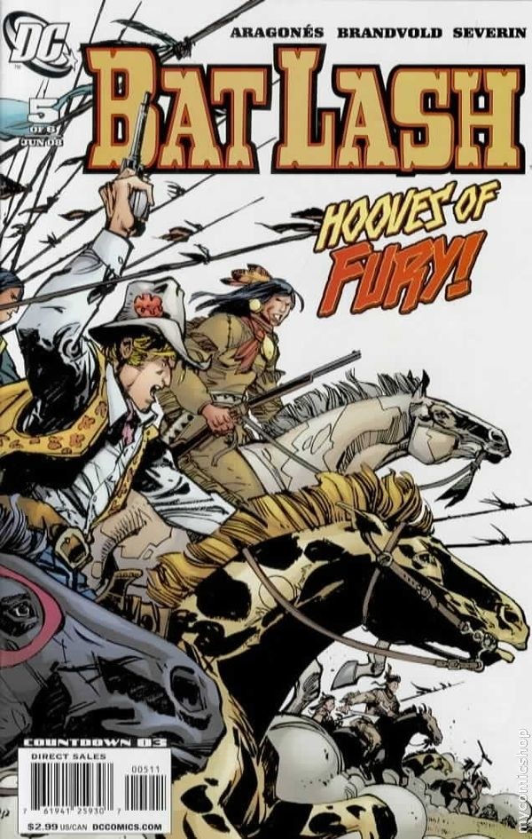 Bat Lash featuring art from the legendary (and recently deceased) John Severin. This little jewel of a series also boasts a script by Peter Brandvold and Sergio Aragones, with a sharp cover Walter Simonson. For those of you who are not "in the know" that (with the exception of co-writer Branvold) is an extraordinary cast of creators!