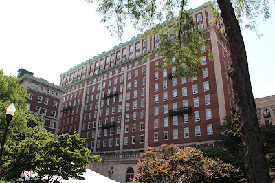 | The view of Butler Library--note Greek philosophers and authors--from the steps outside the rotunda. (8/26/13) |